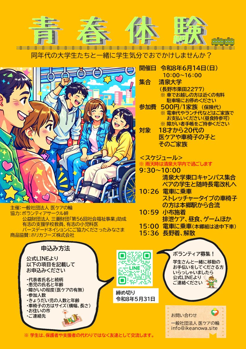 対象: 18歳から20代の医ケアや車椅子の子とそのご家族